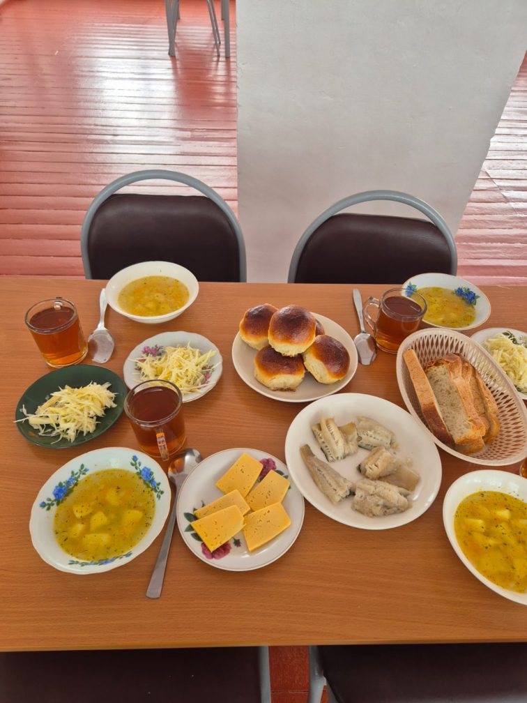 Уха, булочка,компот, хлеб