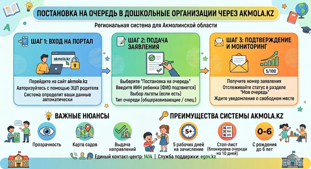 🎡 Арқылы балабақшаларға кезекке қою Akmola.kz